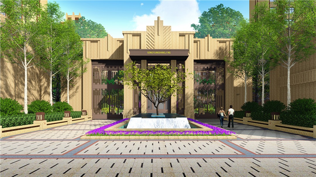 項目建筑為ARTDECO風格,外立面公調明快,偏暖色調為主,輪廊線豐富,層次感強。建筑形式以高層住宅+沿街商業。