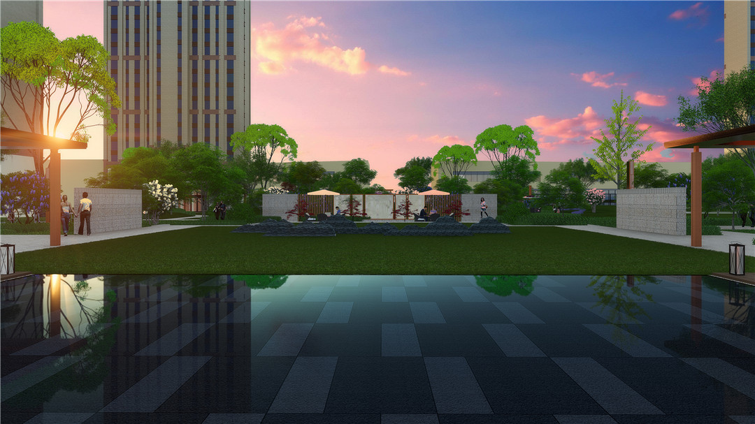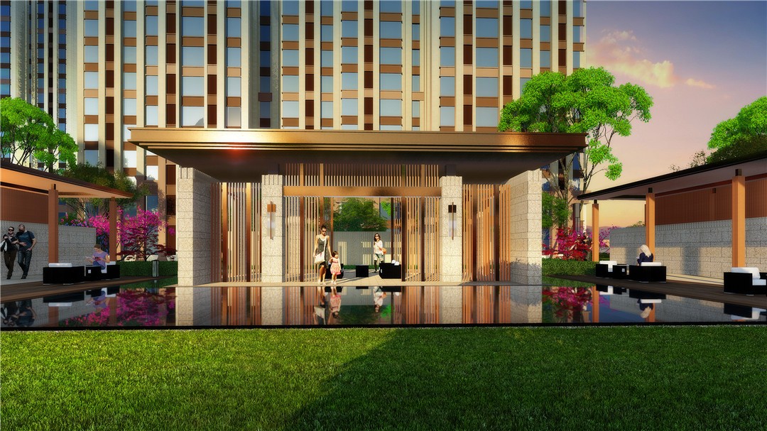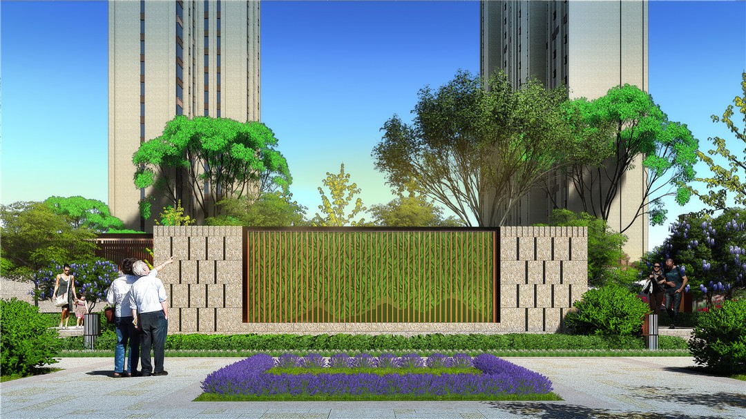 商業(yè)及綜合辦公樓為現(xiàn)代風(fēng)格,材質(zhì)為米色石材灰色鋁板結(jié)合玻璃幕墻,住宅為ARTDECO風(fēng)格,材質(zhì)以米灰色涂料和深棕色石材為主,景觀在材質(zhì)上與建筑相呼應(yīng)。