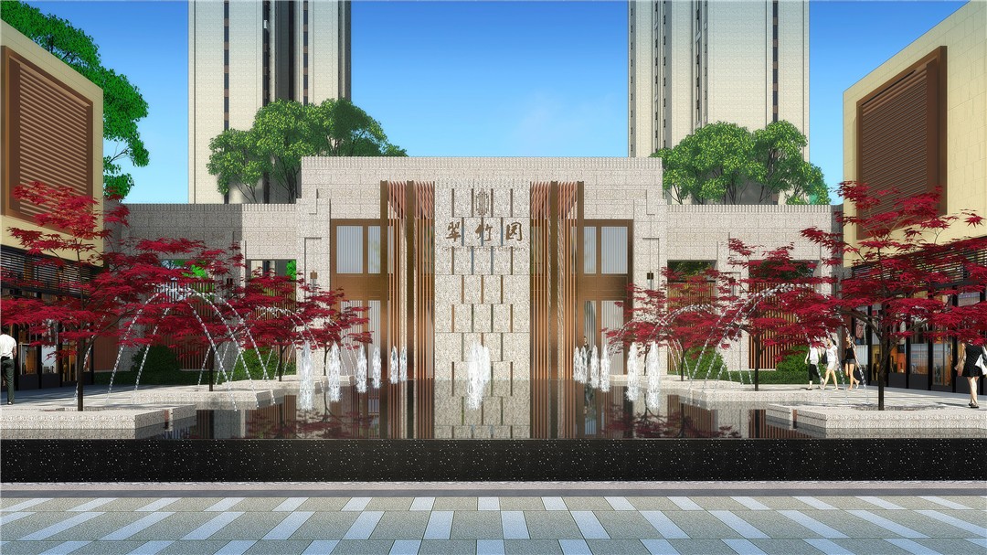 其二商業(yè)中庭,設(shè)計為后期商業(yè)運營留出空間,打造一處”幽篁里”特色景觀,作為中庭空間標(biāo)識,